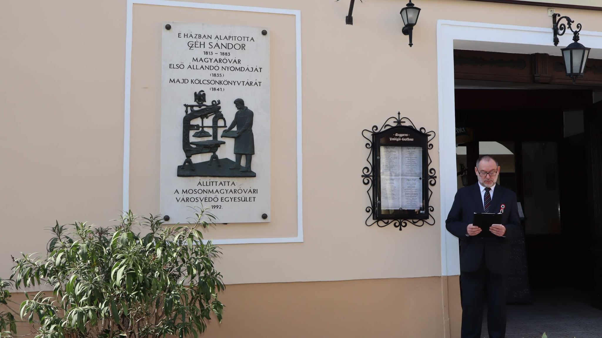Most Czéh Sándor nyomdászra emlékezünk. Ezt az emlékhelyet az elmúlt évben Beregszászi Balázs levéltáros javaslatára vettük fel a magyaróvári civil koszorúzás helyszínei közé.